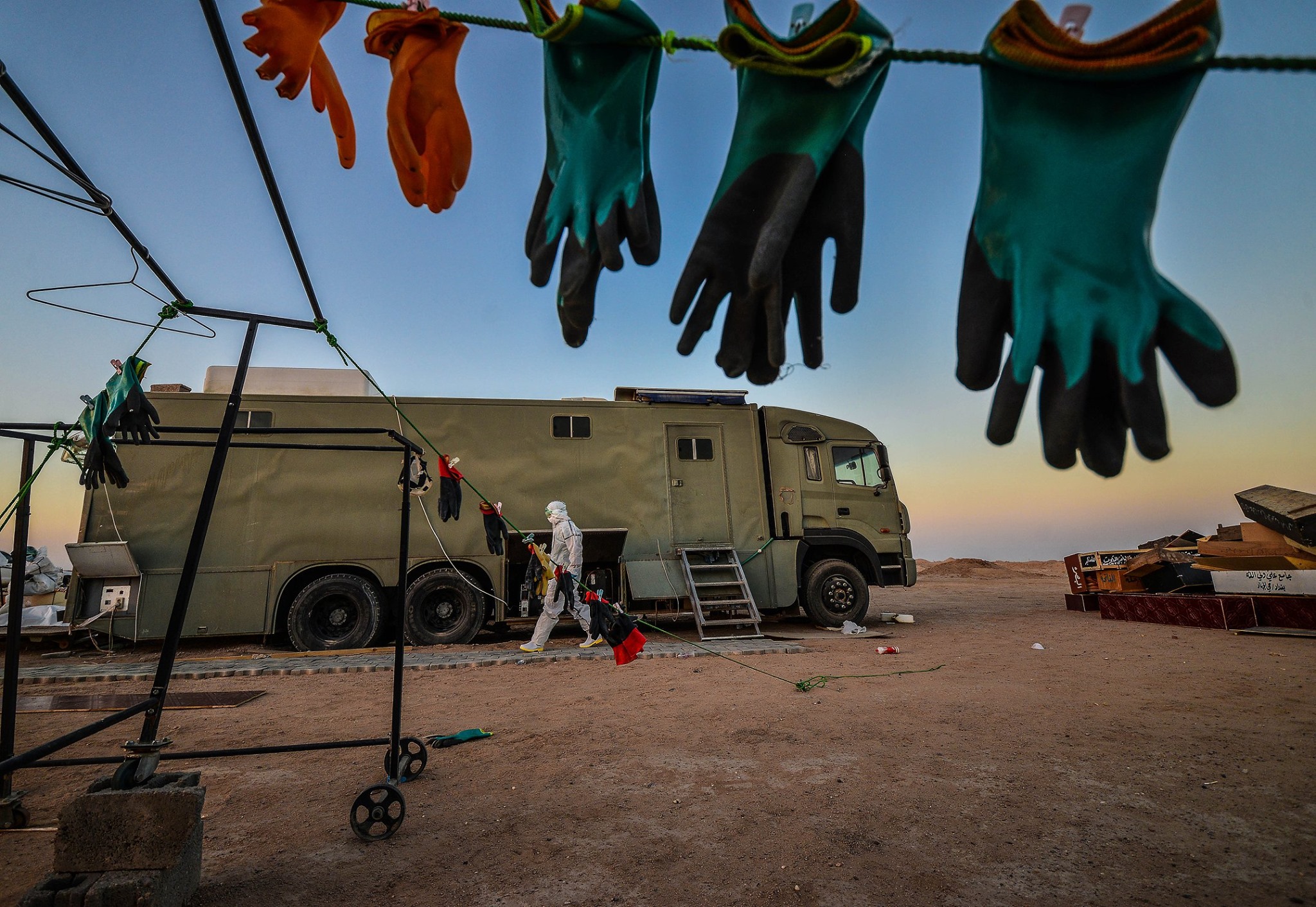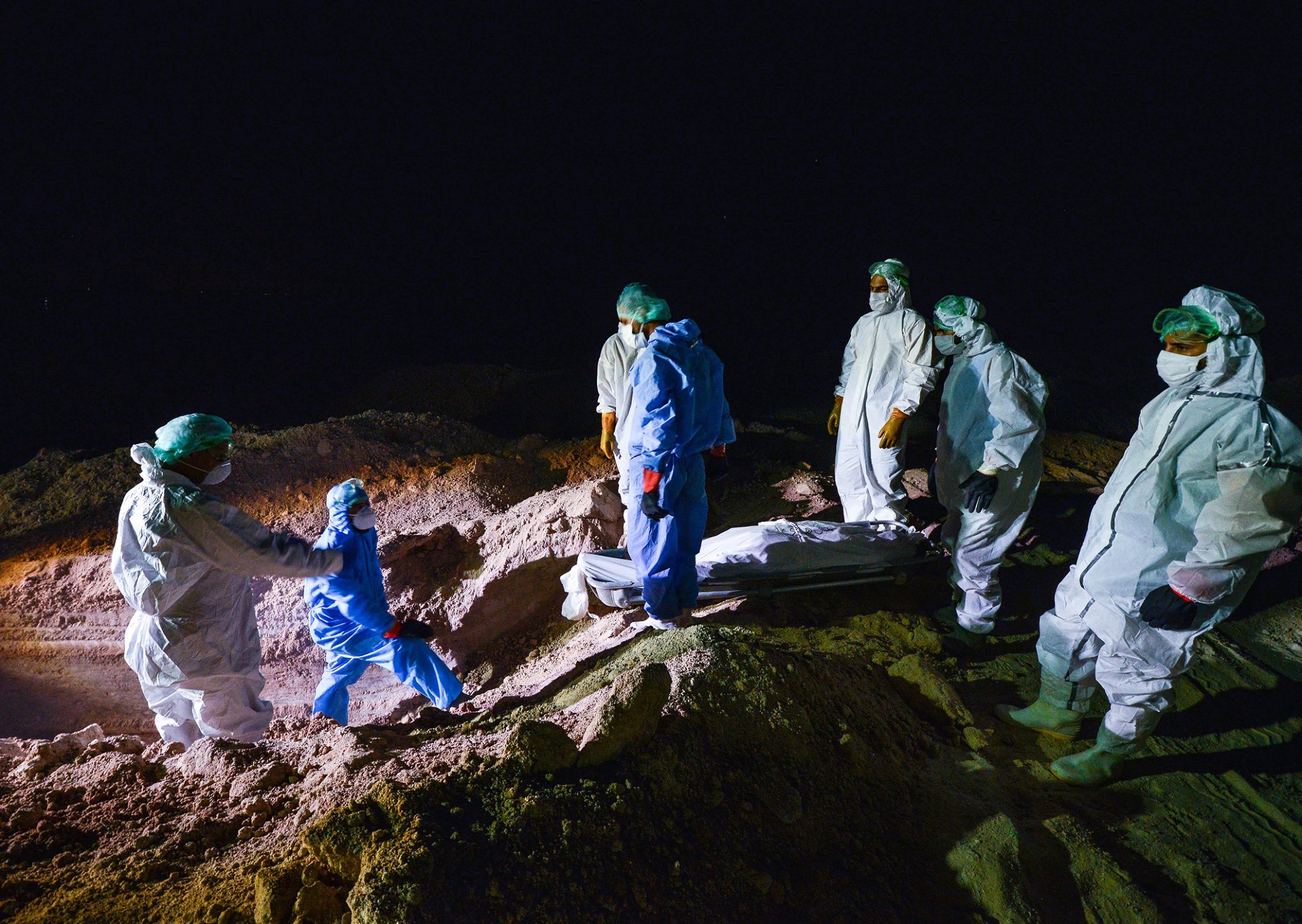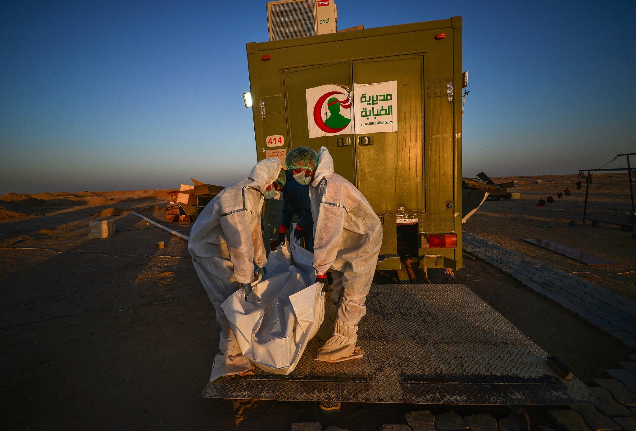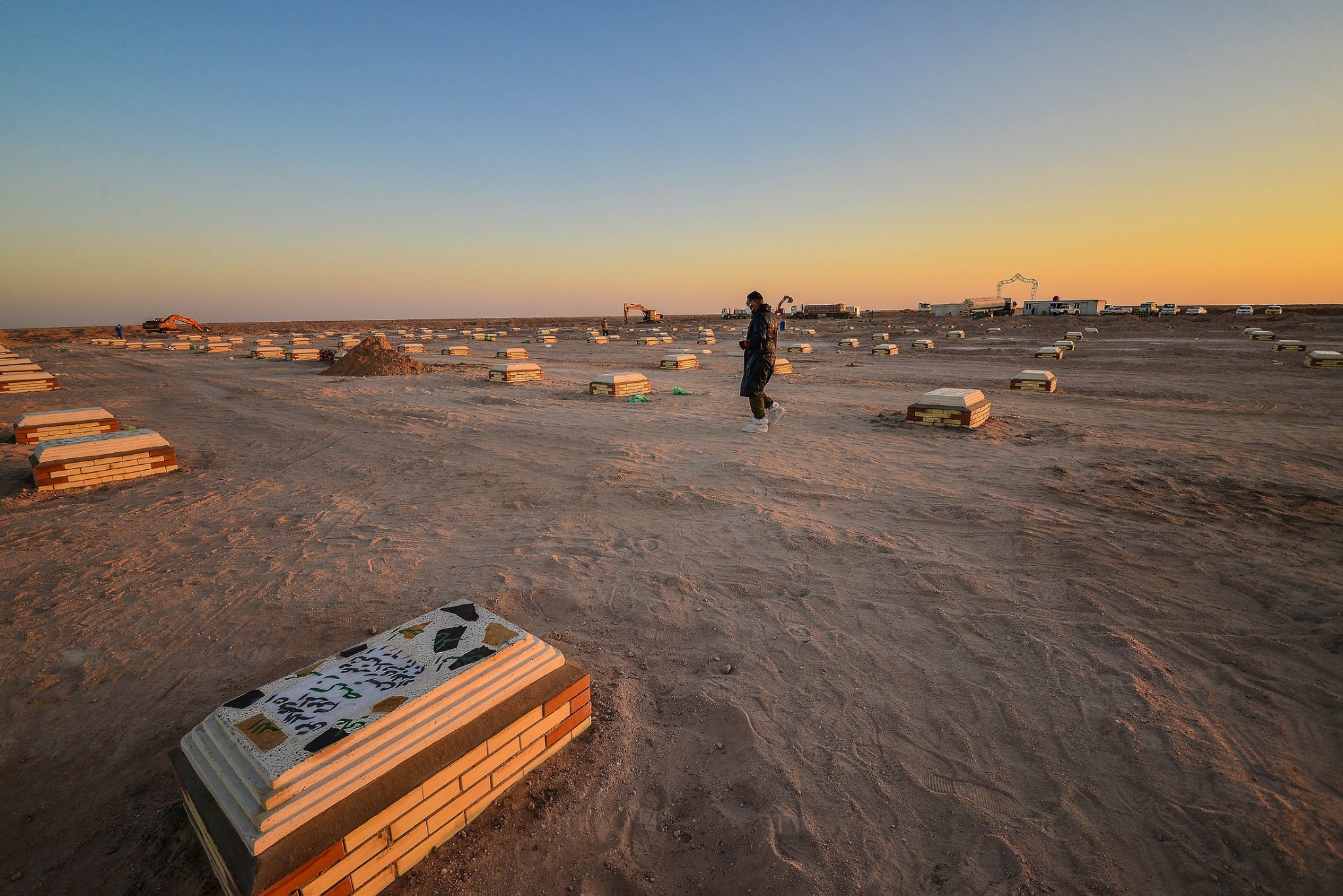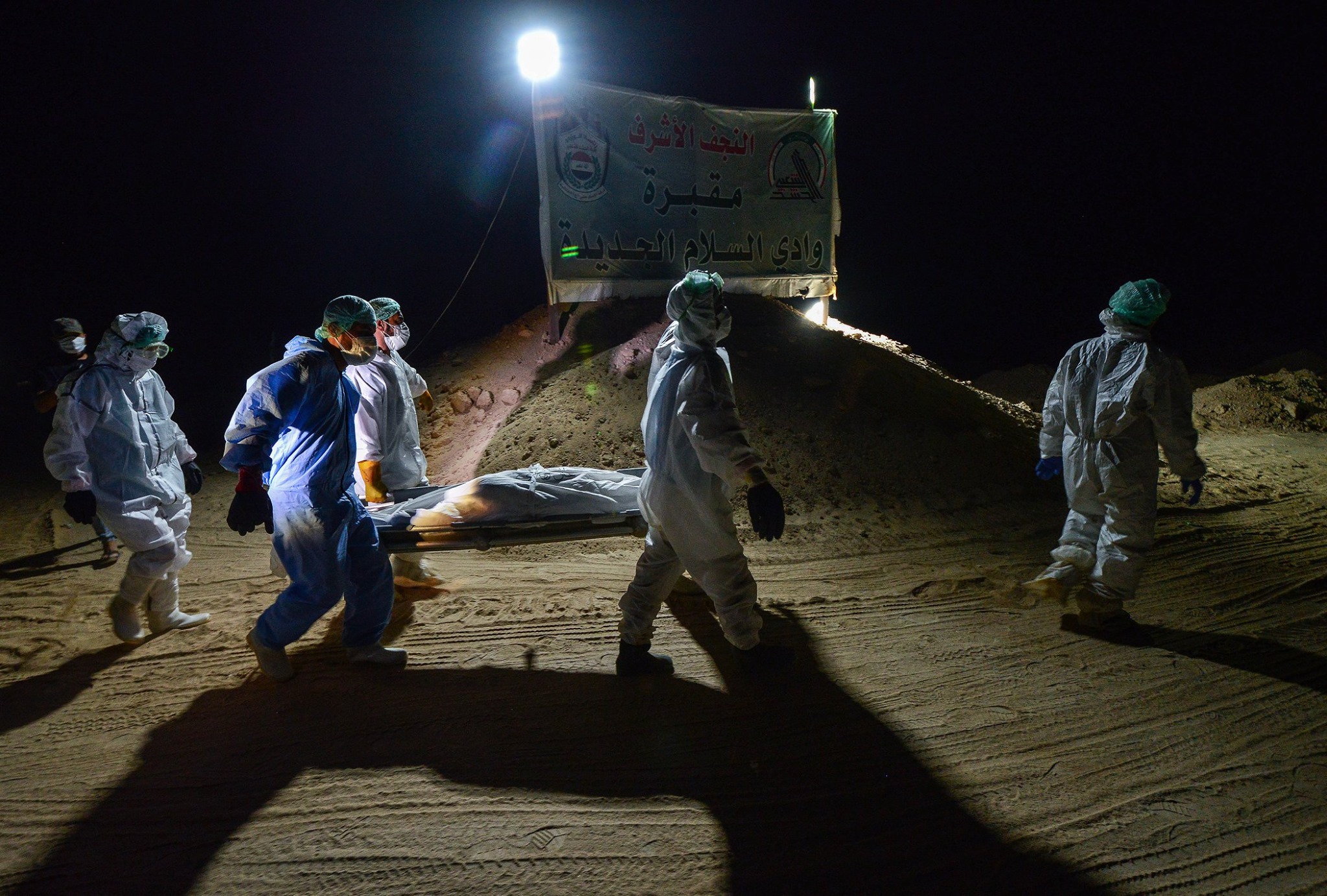 المصور الصحفي علي الفهداوي يوثق اللحظات الاخيرة قبل ان توارى جثامين المتوفين بفايروس كورنا من قبل رجال الحشد الشعبي في مقبرة وادي السلام …. مشاهد مؤلمة علها توقظ فينا الحيطة و الحذر للحفاظ على انفسنا و عوائلنا و ندعو الله ان يمن على هذا البلد بالامن و الامان و انا لله و انا اليه راجعون .