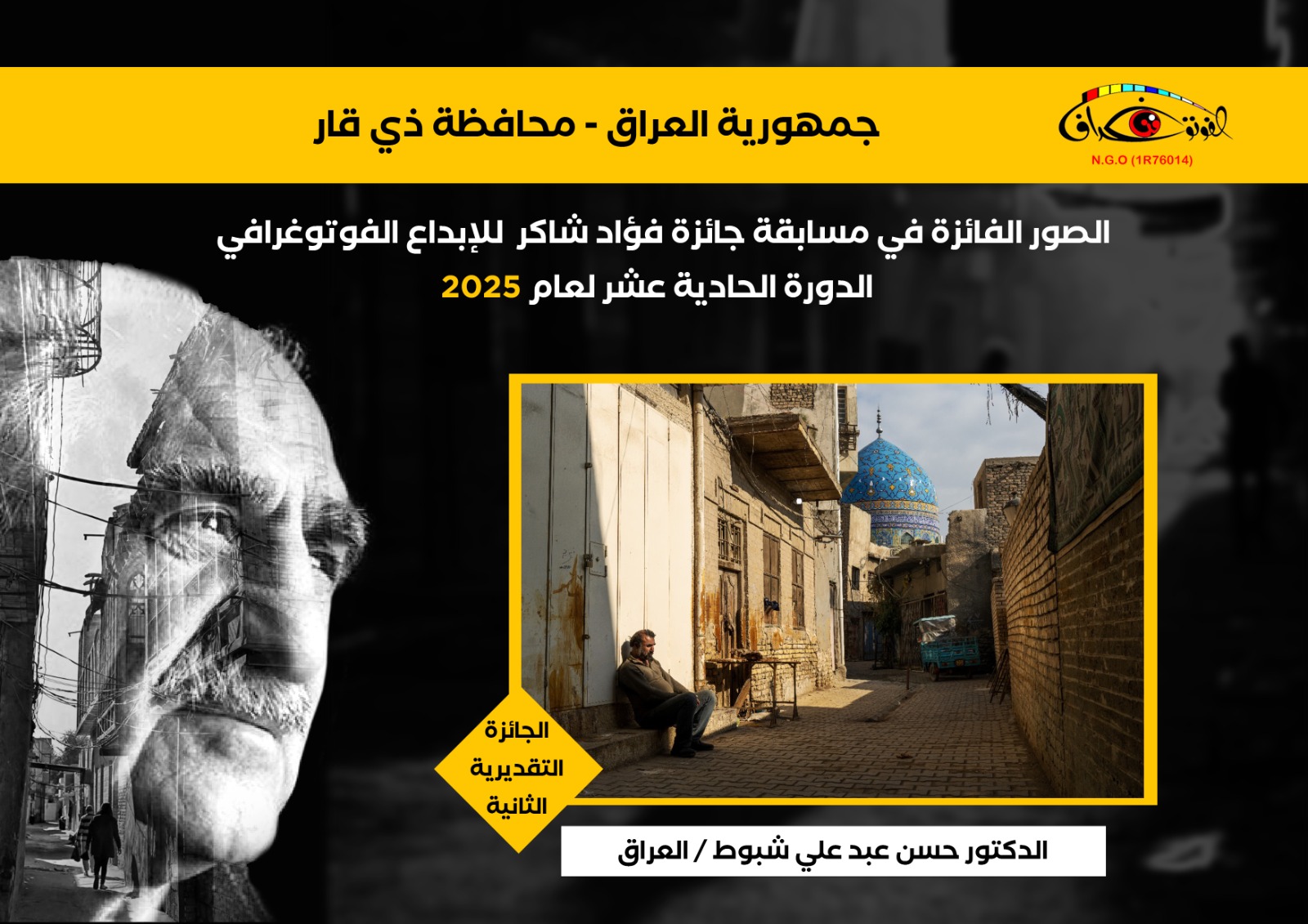 أعلنت لجنة الفرز و التحكيم التي تم تشكيلها لجائزة فواد شاكر للإبداع الفوتغرافي الدورة الحادية عشر لعام 2025 و التي يقيمها منتدى فن الفوتغراف تخليدا لذكرى المرحوم فؤاد شاكر شاعر الضوء حيث حضيت اهتمام كبير من قبل المصوريين العرب وكانت ثيمة هذا العام (للازقة حكايات) وقد ظمت لجنة التحكيم كلا من