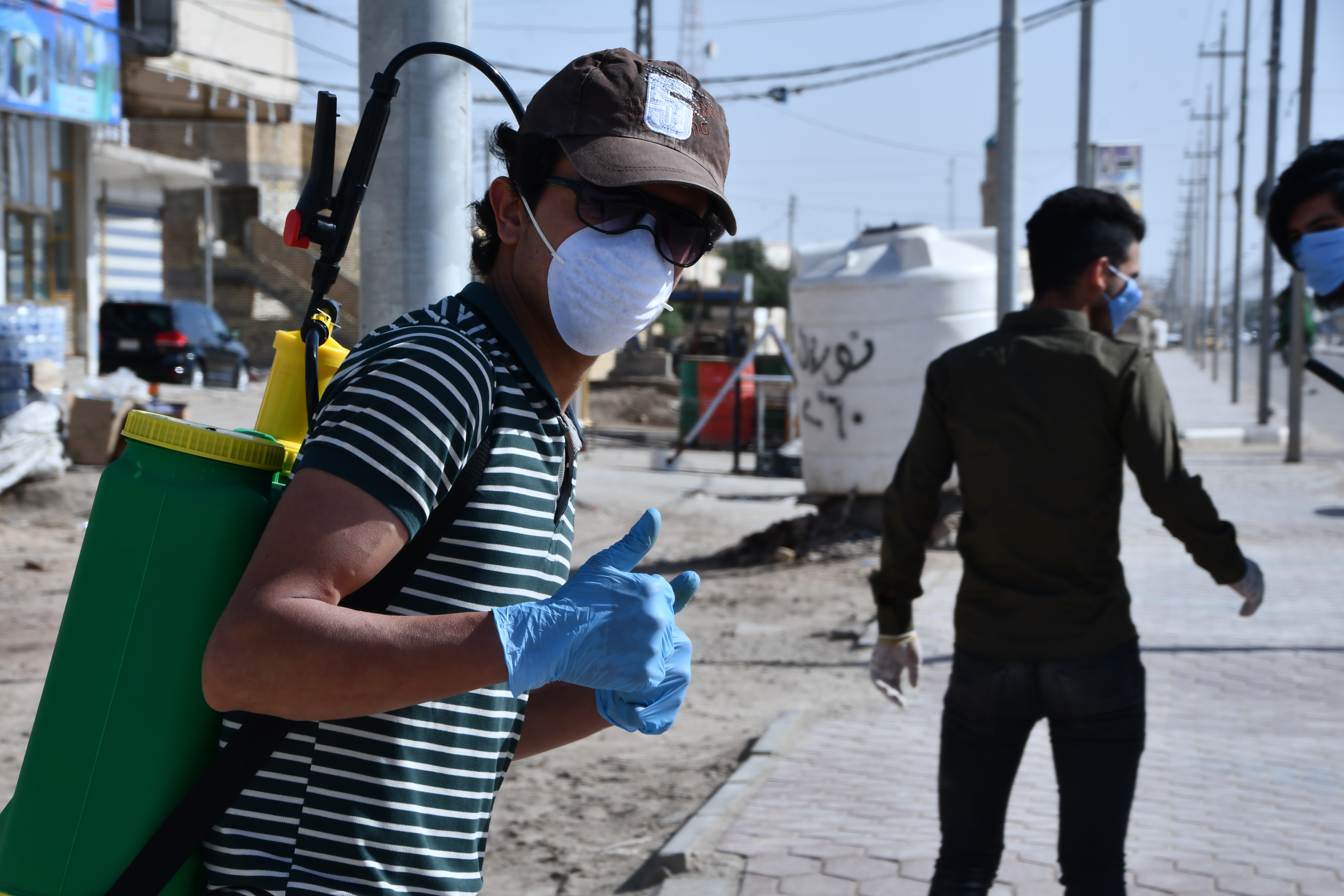 في مواجهة وباء كورونا و بعد اعلان تمديد حظر التجوال لغاية 19 / 4 / 2020 شارك مصوري وكالة ايمج نيوز مع بعض الشباب من الناشطين المدنيين من ابناء مدينة الناصرية بحملة لتعقيم و تعفير بعض الاحياء السكنية في مدينة الناصرية محافظة ذي قار جنوب العراق  و شملت الحملة منطقة العمارات السكنية في حي الشموخ و منطقة حي اور و قد كانت الادوات المستخدمة في الحملة و المطهرات تم شرائها من قبل المشاركين و من جيبهم الخاص ولاء منهم لمدينتهم و اهلها الطيبين .