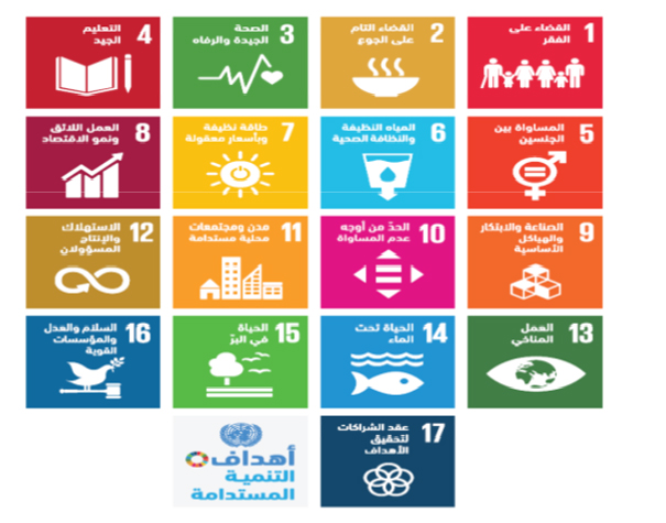 وفي ما يلي مجموعة الشعارات المعتمَدة للأهداف السبعة عشر: