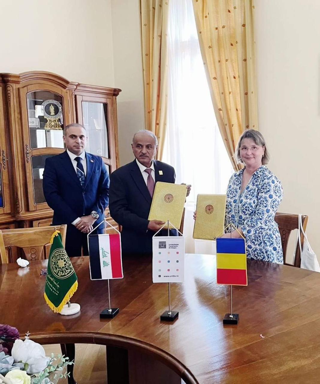 جامعة الكوفة توقع مذكرة تفاهم مع جامعة ترانسليفانيا الرومانية